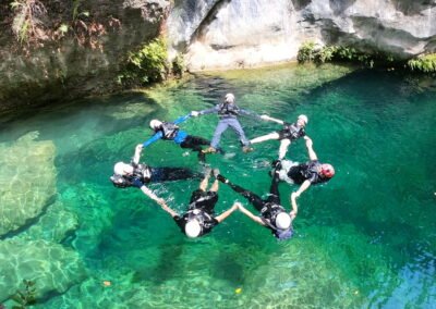The Hydrophobia Canyon is a physically demanding and technical canyon with a high adrenaline factor. It is suitable for confident, athletic individuals and strong swimmers who seek a challenge. The rock formations within the Hydrophobia Canyon add to the impressive mountainous landscape.
